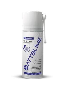 ATTBLIME spreji za matiranje so optimizirani spreji za 3D meroslovje preverjene nemške kakovosti. Ne vsebujejo titanovega dioksida (TiO₂), n-heksana in adamantana. Formula temelji na 99,9-odstotnem ciklododekanu (CDC), ki se ne kopiči v vodnih organizmih in je popolnoma neškodljiv za ljudi in okolje.